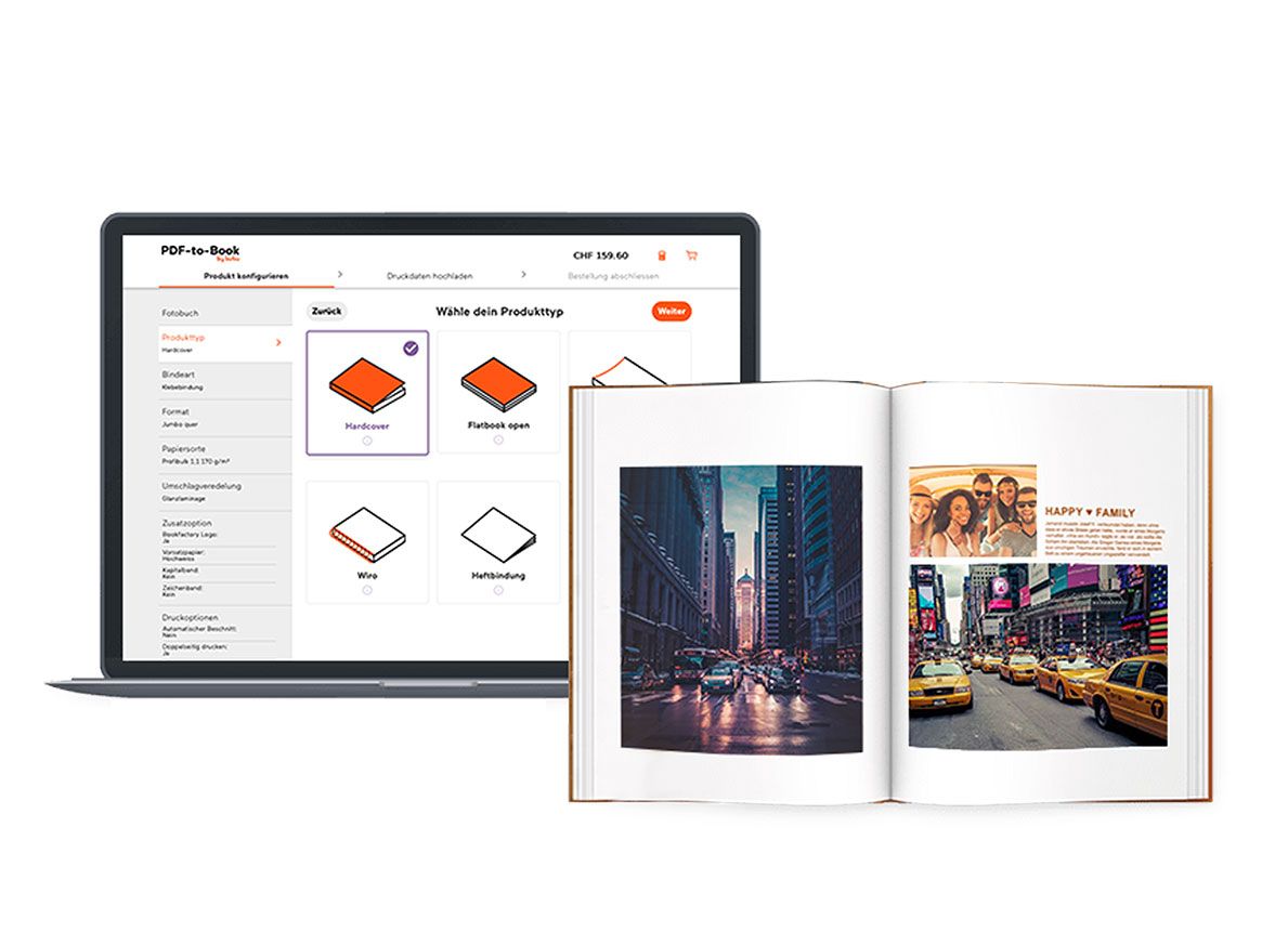 • Konfiguriere dein eigenes Buch aus Inhalts- und Cover-PDF